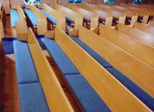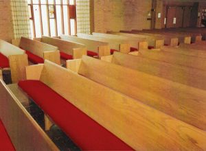 Our Deluxe Pew Form Cushions lend a high quality, tailored appearance without going to the extent of permanent upholstery. Cushions have a lauan plywood base contoured to match the curvature of the pew seat, yet is removable and will not damage pews. A non-slip gripper tape is added on bottom to protect pews and prevent cushions from slipping. Fabric is stretched four ways, to prevent wrinkling, over high density polyurethane foam 1 1/2” to 2” thick. Add a cord filled welted front edge and you will be impressed with their appearance and superior quality.